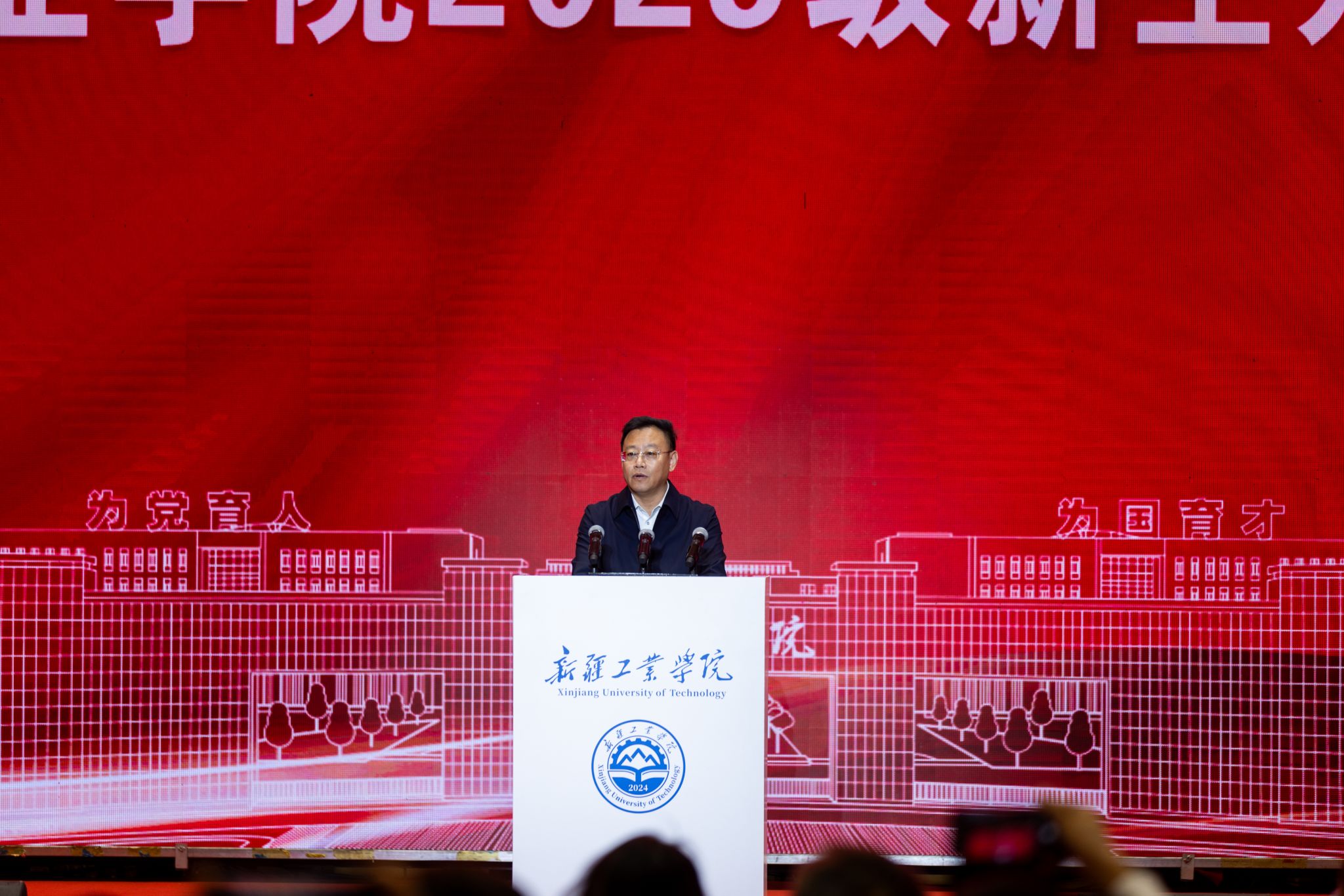 关心支持学校建设发展的中国高等教育学会,兵团机关部门,和田地区,北京市、天津市、安徽省援疆指挥部,第八师石河子市、第十四师昆玉市、第十一师有关领导,对口支援高校、自治区和兵团高校、合作企业和筹建办人员代表,beat365官网校领导、各职能部门及学院领导、全体教师,与来自五湖四海的1958名新生齐聚一堂,共同见证这一重要时刻。