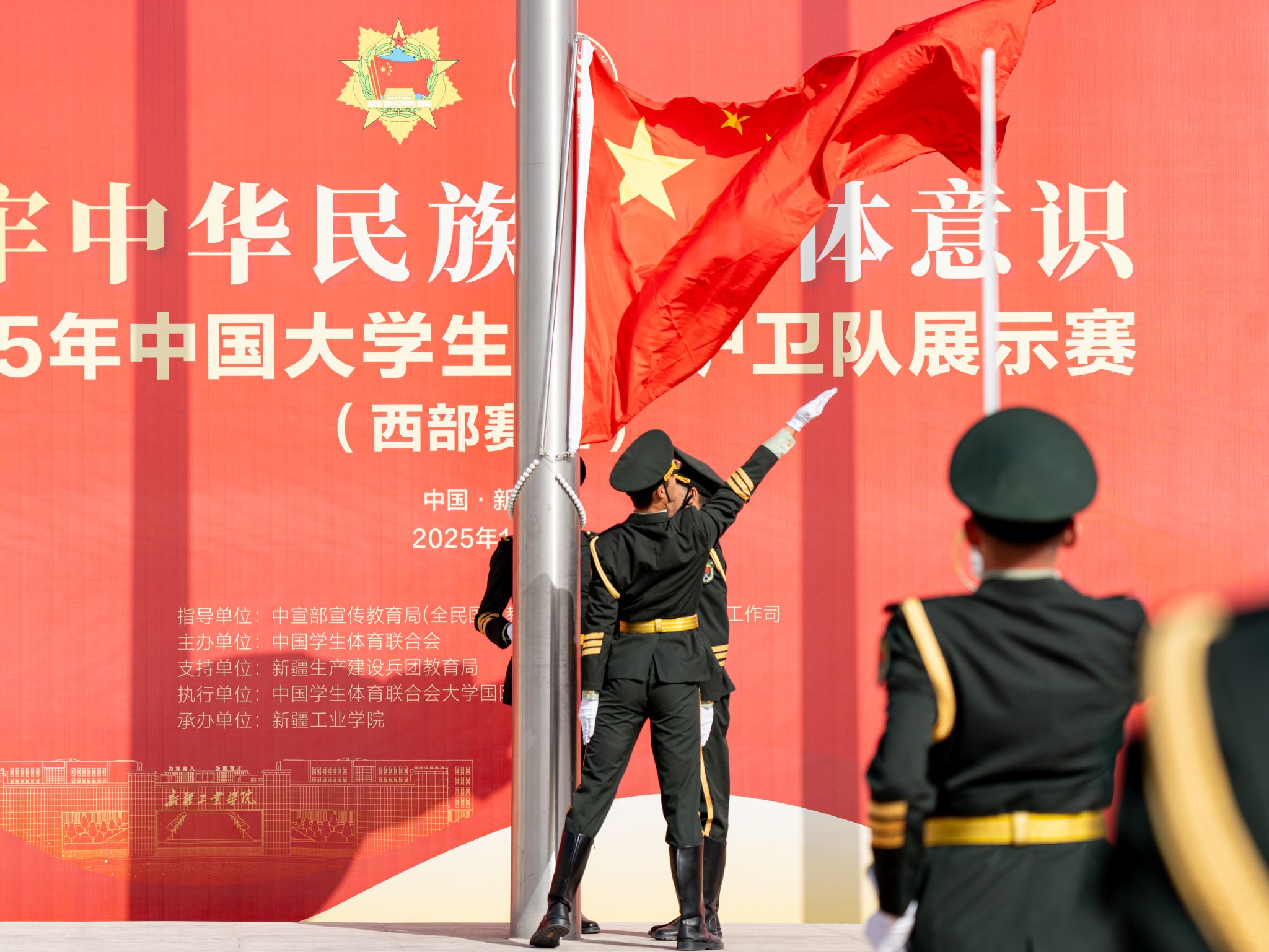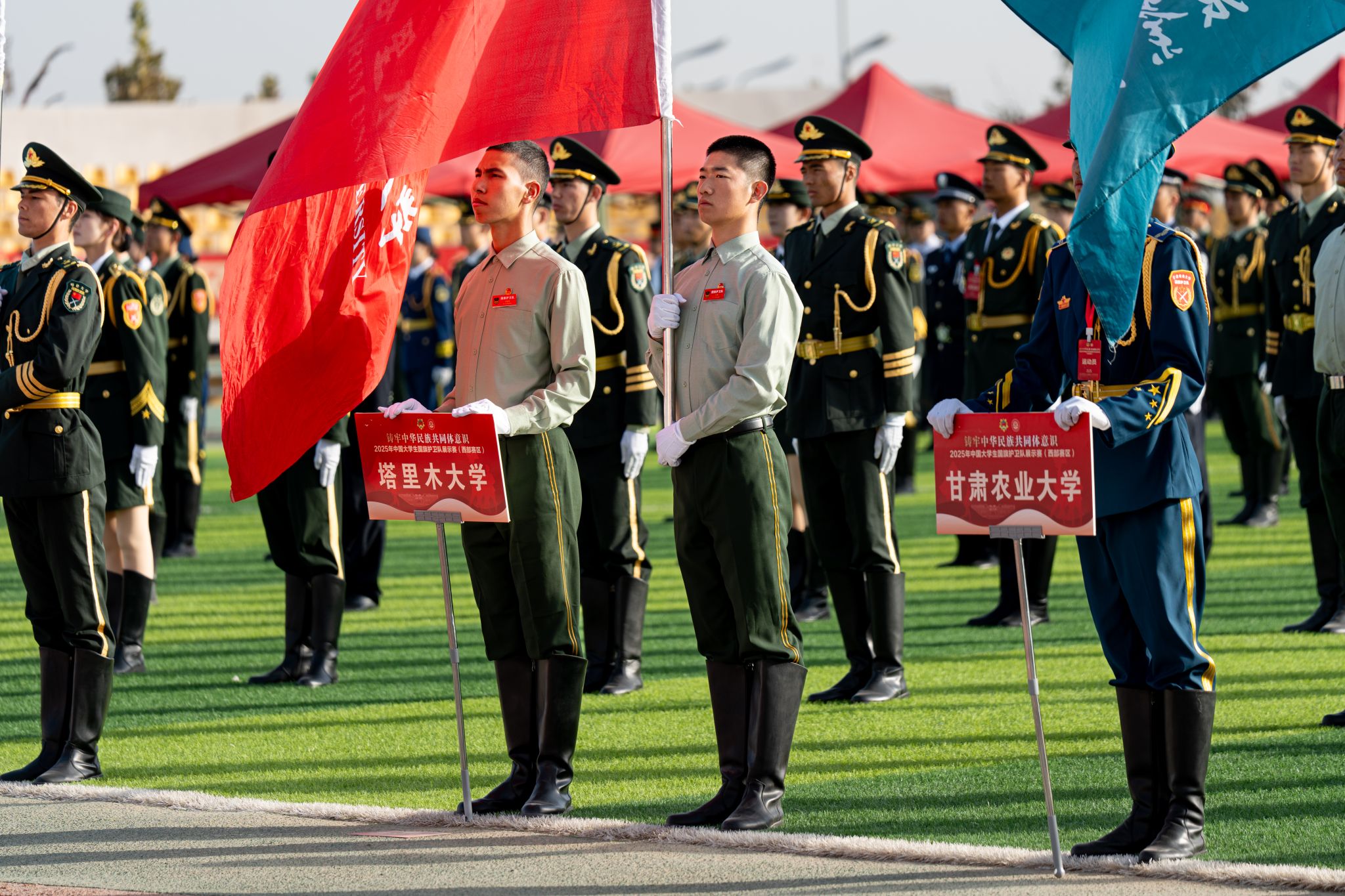 擎旗奋进担使命,青春筑梦向朝阳。10月31日,2025年中国大学生国旗护卫队展示赛(西部赛区)在beat365官网启幕。来自西部赛区新疆、内蒙古、陕西、甘肃等省区,以及非西部赛区上海、重庆、广东等省市的31支高校国旗护卫队、700余名队员齐聚昆仑山下的和田新城,以挺拔身姿、铿锵步履展现当代大学生护旗卫士的热血风采,传递爱国强军的青春信仰。