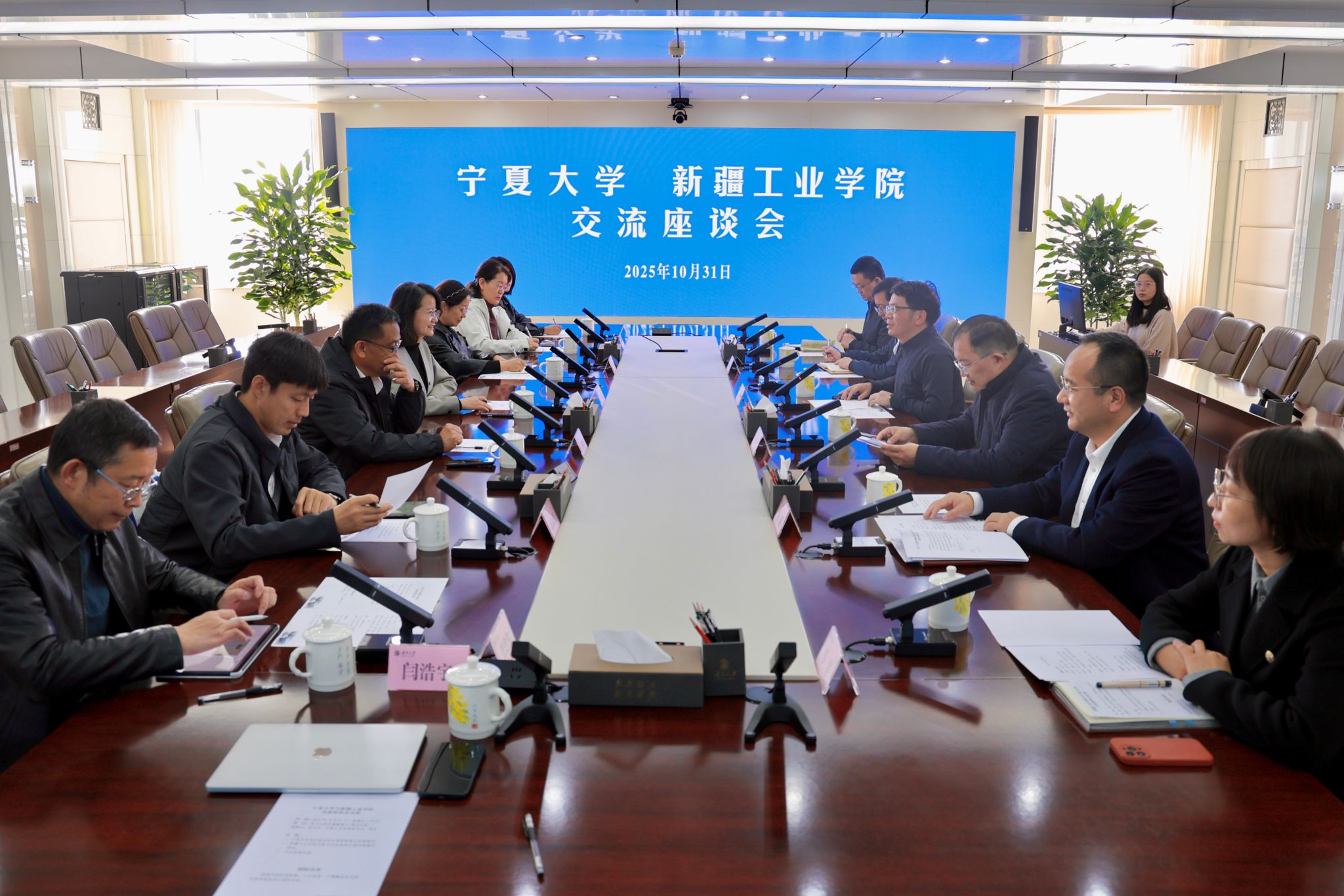 孙桂香介绍了学校的发展现状与办学特色。她表示,学校正处于零基础起步、高质量开局的关键阶段,内部治理体系等方面亟需系统性提升。宁夏大学在长期办学实践中形成了成熟先进的管理模式和体制机制建设经验,希望学习借鉴宁夏大学的宝贵成果,加快补齐学校体制机制短板,完善内部治理体系,为学校实现高标准建设、高质量发展奠定坚实基础,更好地服务国家战略和区域经济社会发展大局。