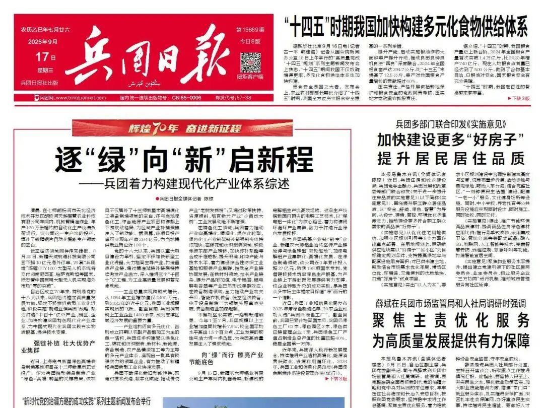 在新疆组建生产建设兵团,履行维稳戍边特殊使命,是党中央治国安邦、强化边疆治理的战略安排。新时代新征程,兵团党委深入学习贯彻习近平新时代中国特色社会主义思想特别是习近平总书记关于青年工作的重要思想,完整准确全面贯彻新时代党的治疆方略,牢记党中央赋予兵团的特殊职责使命,用好兵团精神宝贵财富,激励引领更多优秀青年扎根边疆,为推进中国式现代化兵团实践贡献青春力量。坚持凝心铸魂,着力培养爱党爱国的时代新人。始终把青年思想政治建设摆在首位,...